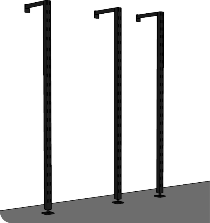 Нога-опора используется как несущий элемент при установке торговых систем и перфорированных стоек в напольном исполнении. Предназначена для создания устойчивых пристенных и островных конструкций в торговых залах и шоурумах.