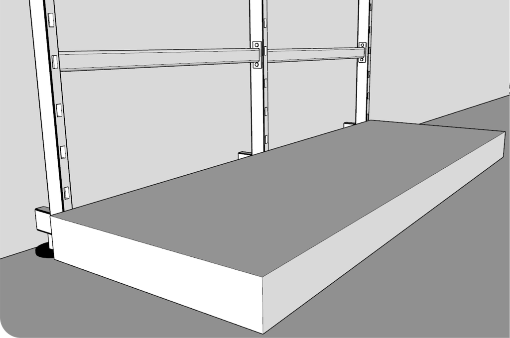 Подиум MADE TS используется как основание для торговых стеллажей серии MADE TS. Обеспечивает устойчивость конструкции и аккуратный внешний вид торгового оборудования. Подходит для магазинов одежды, шоурумов и торговых залов.