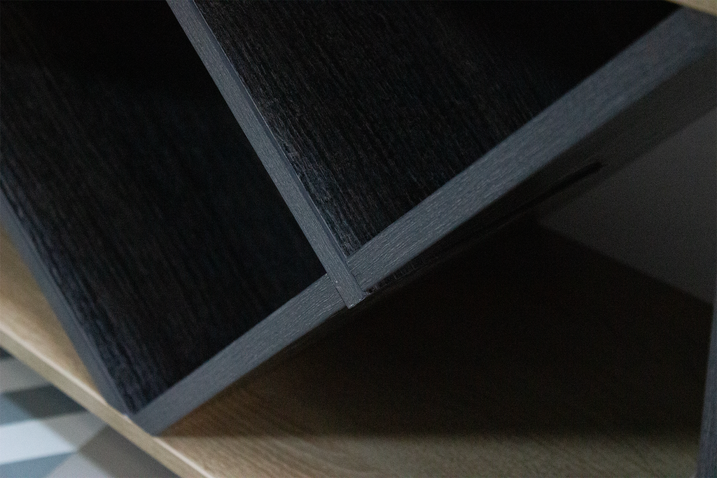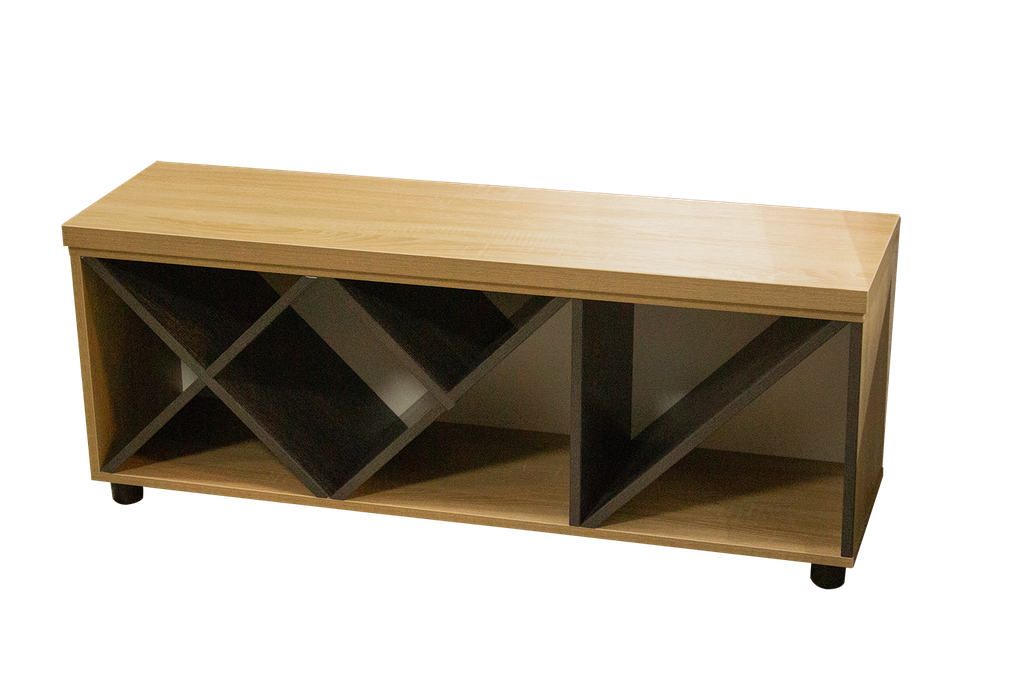 Полки и каркас из ЛДСП делают изделие тёплым и уютным. В ней удобно хранить обувь, сумки и всё, что нужно у выхода. А ещё — она вызывает эмоции. Особенно, когда кто-то замечает ту самую форму в буквах.